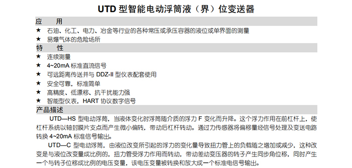 UTD型智能電動(dòng)浮筒液(界)位變送器