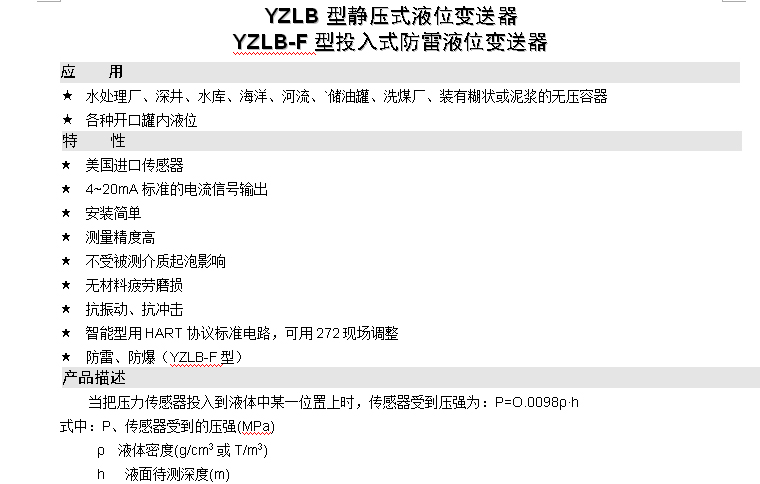YZLB型靜壓式/YZLB-F型投入式防雷液位變送器